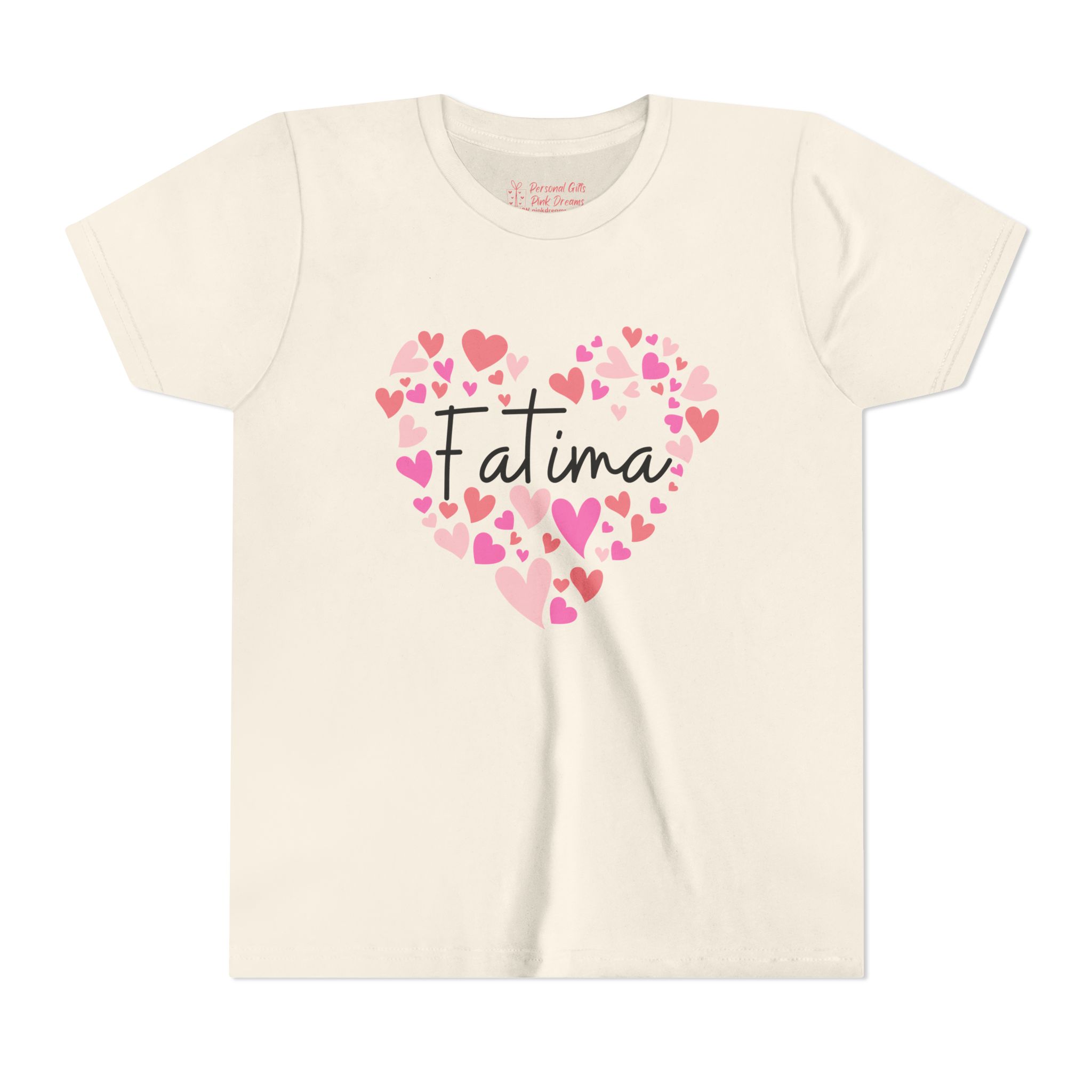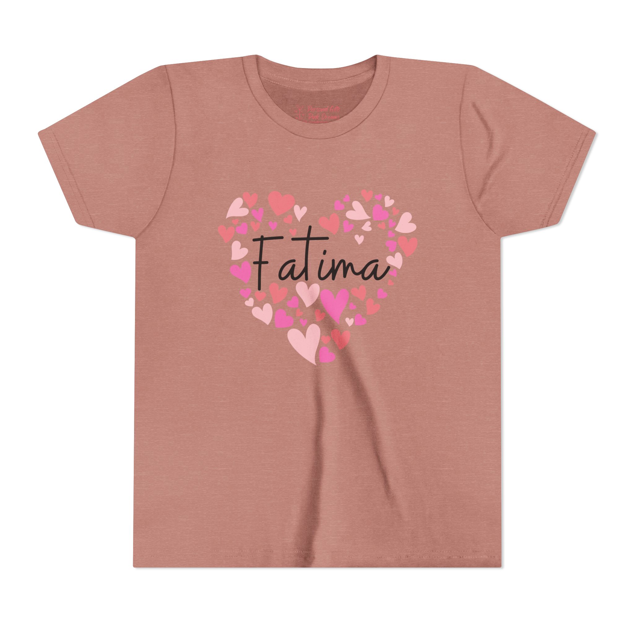 Youth Short Sleeve TeYouth Short Sleeve Tee - I love Fatima hearts in pinkYouth Short Sleeve TeYouth Short Sleeve Tee – I love Fatima hearts in pink